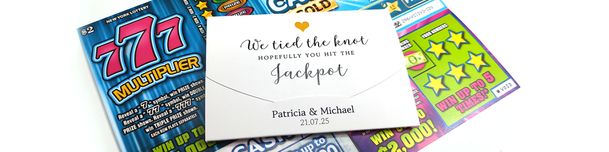 These cute little wallet/envelopes are perfect for presenting scratch cards used for wedding favours for your guests. Available in 3 different sizes which accommodate a range of scratch cards sizes. If you don't see your size listed, please get in contact for a custom size.