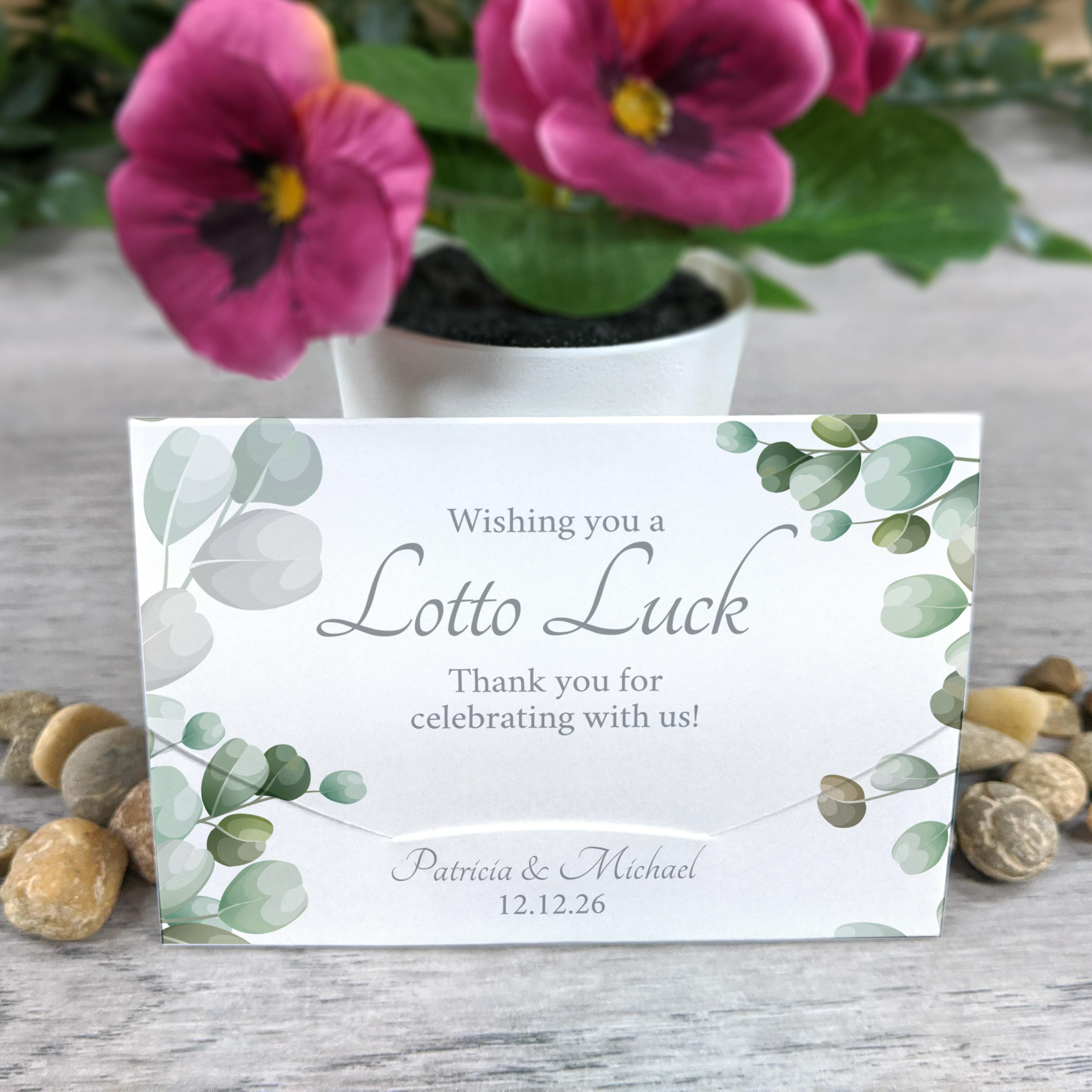Super cute and fun favor for our wedding guests! The design was exactly as pictured and a small scratch-off lotto ticket fits perfectly inside.