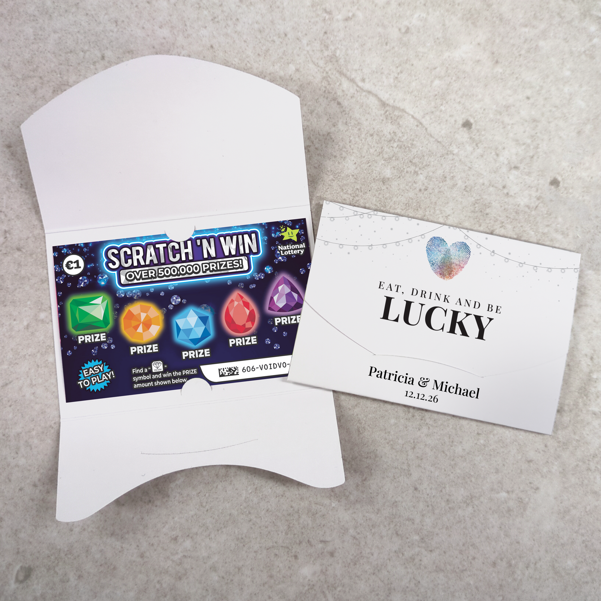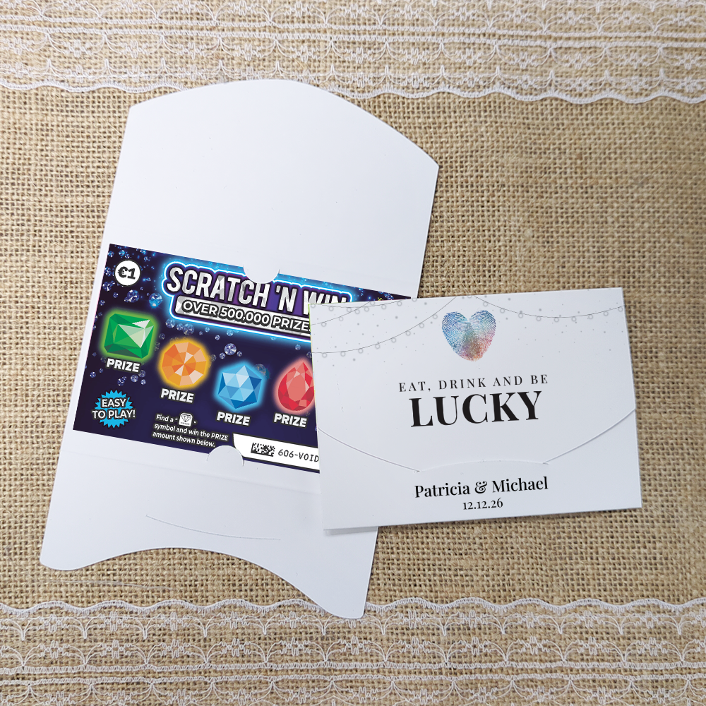 Printed on a heavyweight 300gsm silk card, the holders have flaps to hold your scratch card securely without having to resort to using glue or tape. They are supplied pre-creased and ready to be folded.