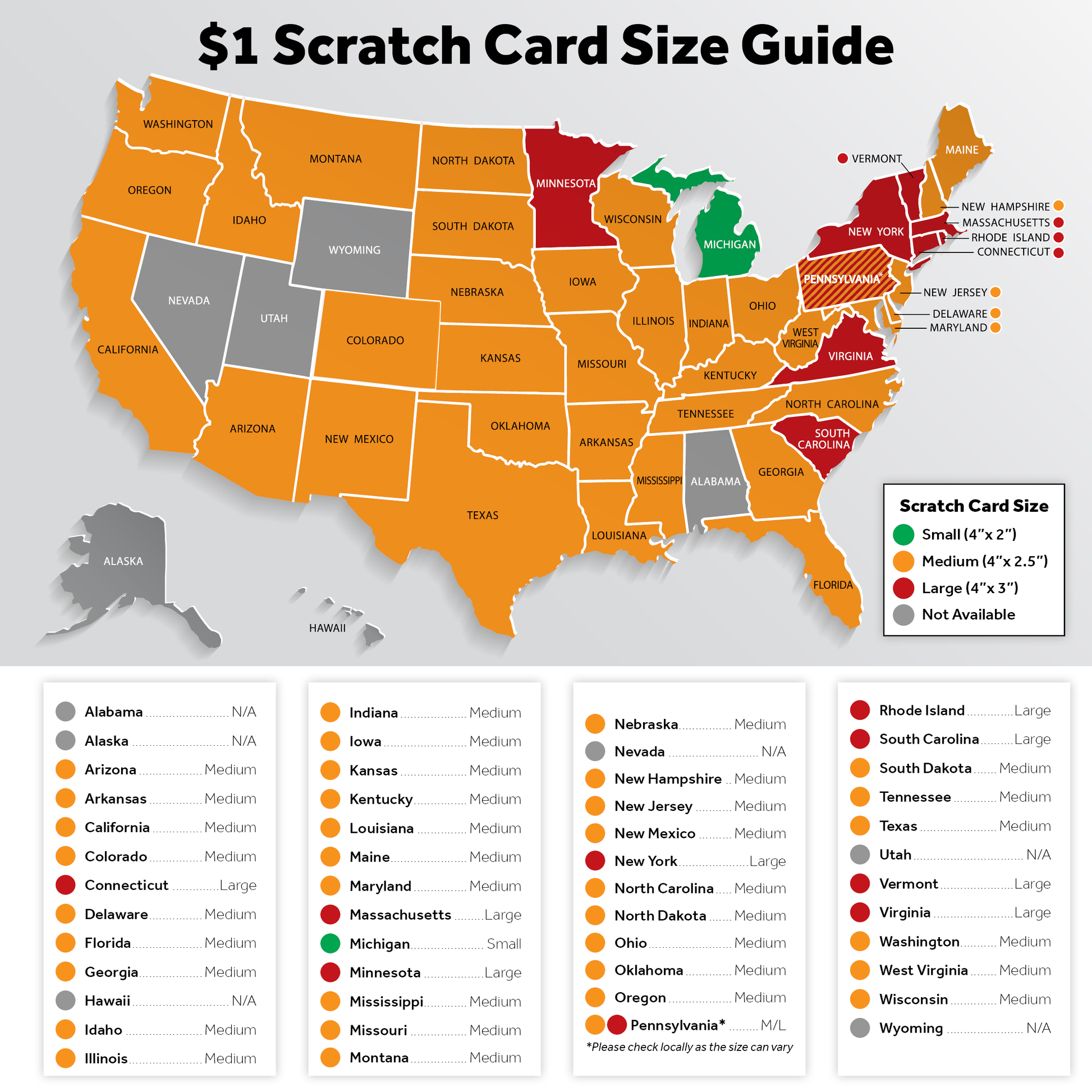 The sizes listed are for the actual scratch card you intend to use. Please see our size guide for more information