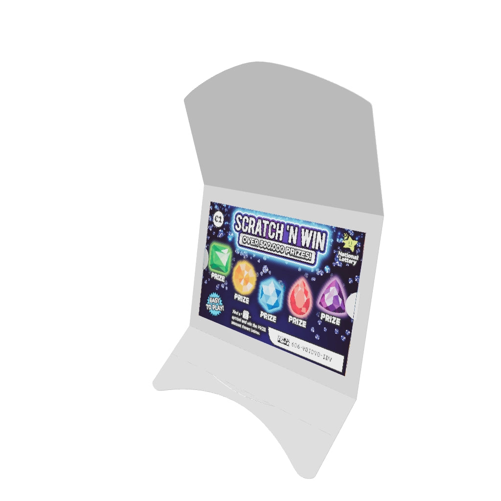 Printed on a heavyweight 300gsm silk card, the holders have flaps to hold your scratch card securely without having to resort to using glue or tape. They are supplied pre-creased and ready to be folded.