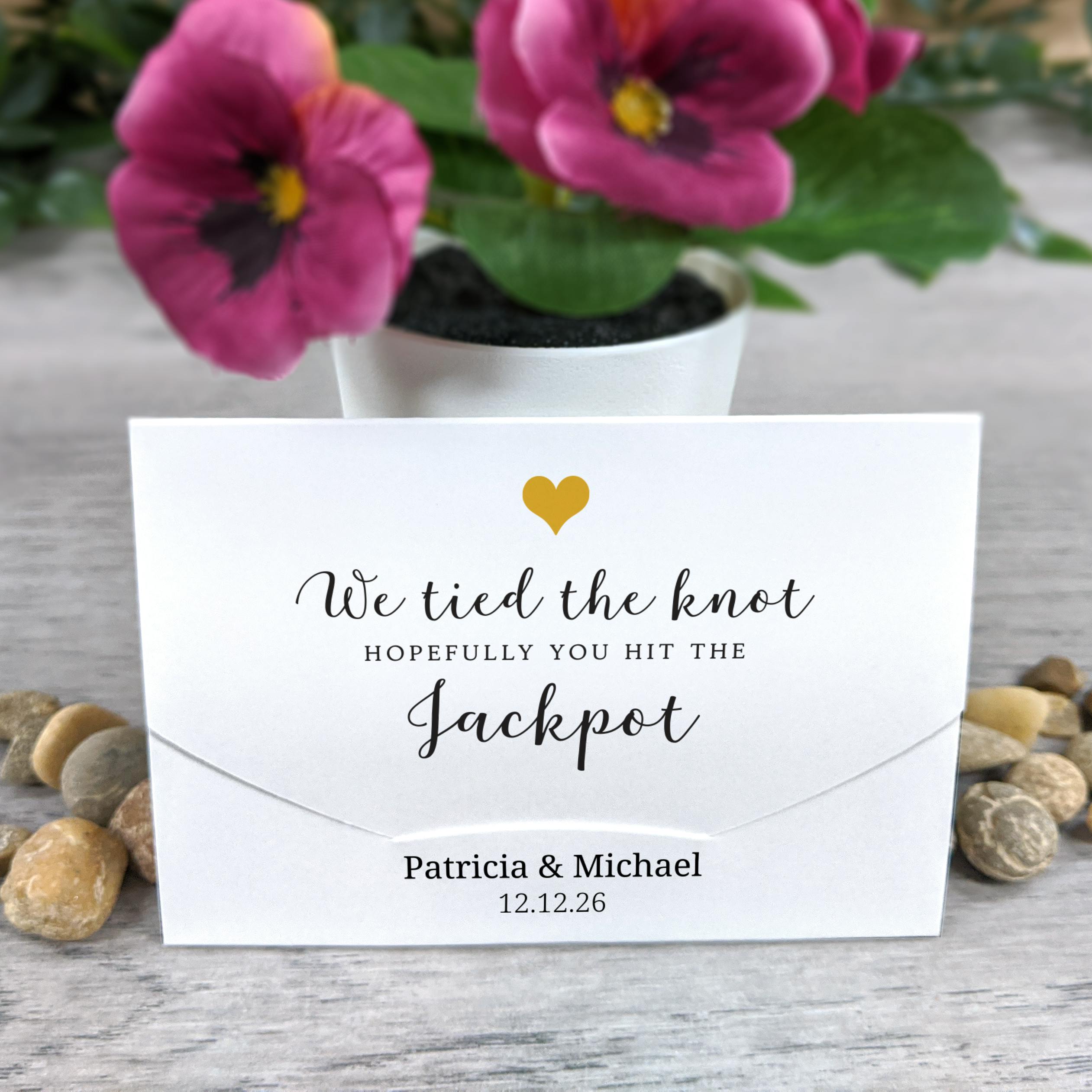 These cute little wallet/envelopes are perfect for presenting scratch cards used for wedding favours for your guests. Available in 3 different sizes which accommodate a range of scratch cards sizes. If you don't see your size listed, please get in contact for a custom size.