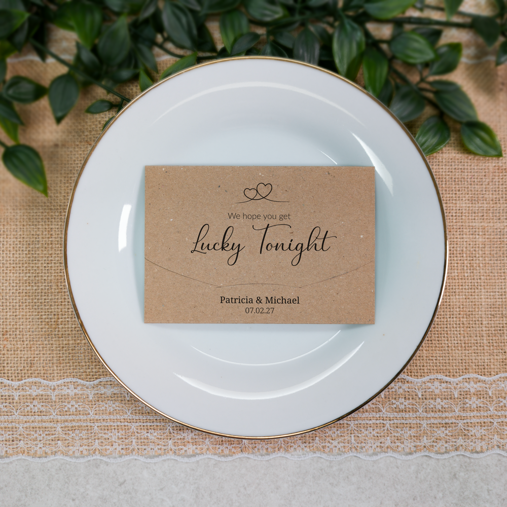 These cute little wallets/envelopes are ideal for holding scratch cards used as wedding favours. The holders measure 11.6cm x 8cm (approx 4.5" x 3.1") when closed and are designed to take a 4" wide scratch card with a height up to an including 3" high. This covers most Irish €1/ US $1 and UK £1 scratch cards.