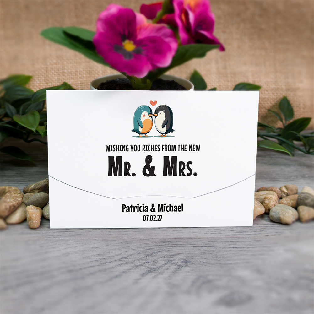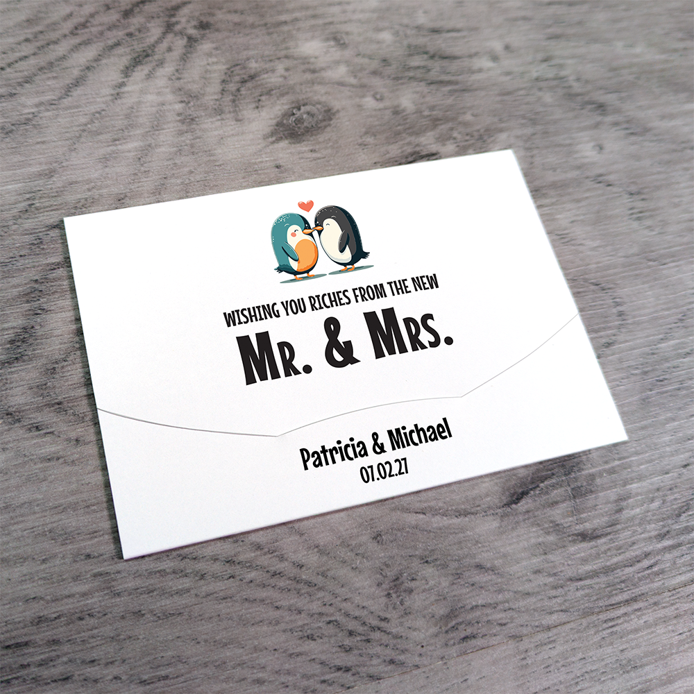 These cute little wallets/envelopes are ideal for holding scratch cards used as wedding favours. The holders measure 11.6cm x 8cm (approx 4.5" x 3.1") when closed and are designed to take a 4" wide scratch card with a height up to an including 3" high. This covers most Irish €1/ US $1 and UK £1 scratch cards.